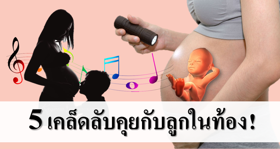 โดยคุณแม่สามารถใช้วิธีสัมผัส ลูบท้อง ใช้ไฟฉายส่อง พร้อมทั้งพูดคุยกับลูกไปด้วย หรือจะร้องเพลง เปิดเพลงให้ลูกฟังบ่อย ๆ จะเพลงไหนก็ได้นะครับ เลือกที่คุณแม่ฟังแล้วสบายใจ ลูกก็จะสบายใจตามไปด้วย